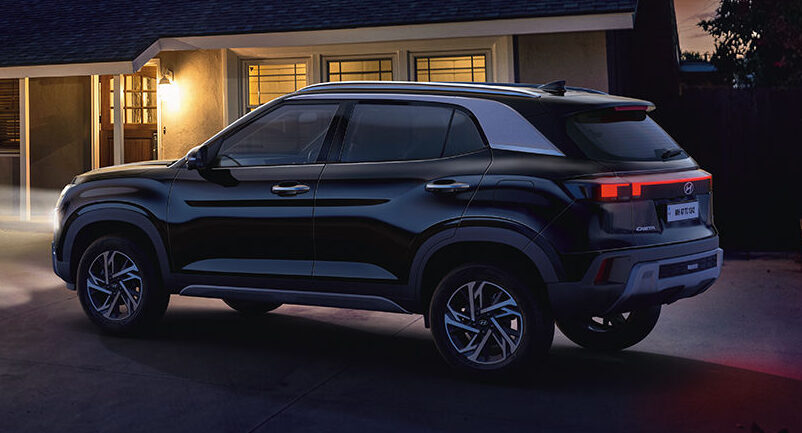 The rear end styling of the Creta facelift follows a similar trend with a more angular design. Notable features include full LED tail-lamps, a continuous LED light bar across the entire width, and a redesigned rear bumper. In terms of profile, the primary visual distinction for the 2024 model lies in its new alloy wheels.
