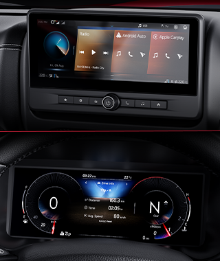 • Twin Digital Screens: The Thar Roxx features twin digital screens that provide a high-tech interface for vehicle information and entertainment. The large touchscreen display integrates seamlessly with both Android Auto and Apple CarPlay, allowing easy access to navigation, apps, and more.