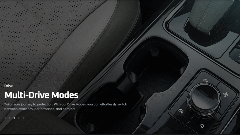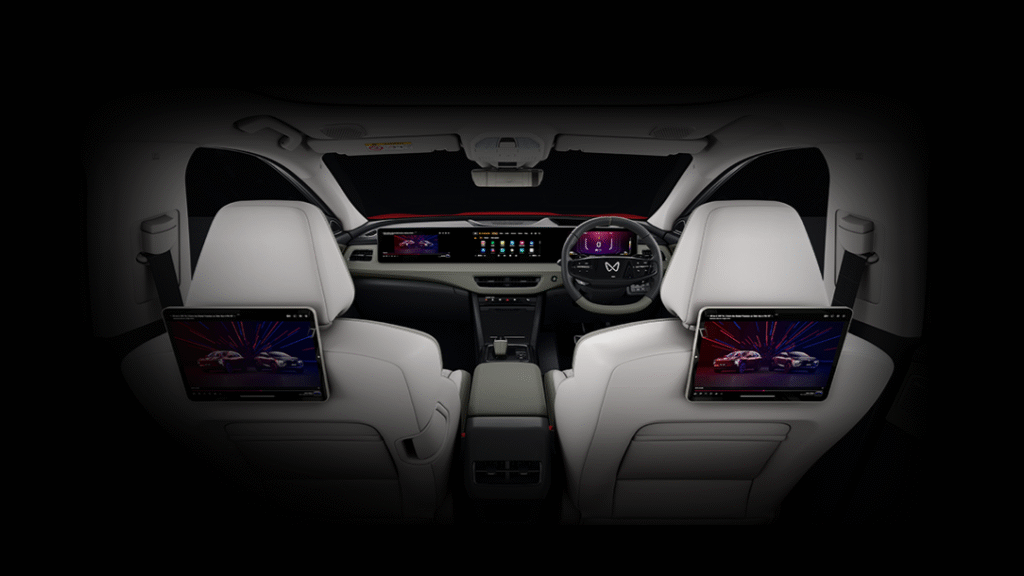 Inside, the cabin is minimalist yet luxurious — sustainable materials, soft-touch surfaces, and clean dashboard lines enhance comfort and tech appeal.